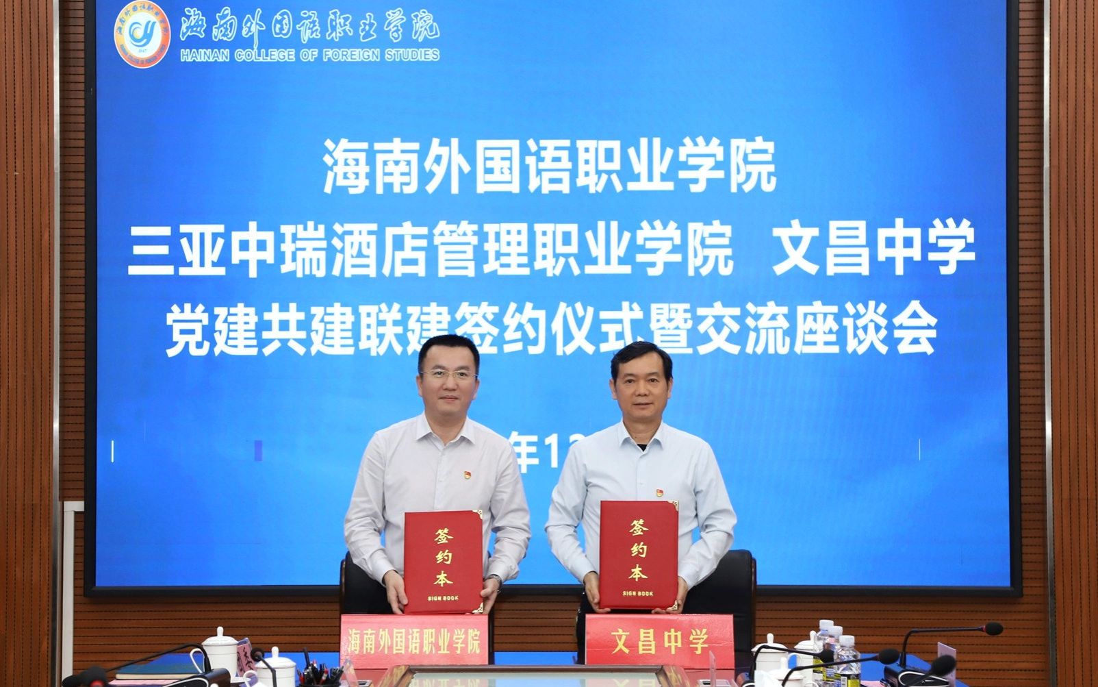 为贯彻落实省委教育工委关于党建共建联建工作的部署要求,构建校际协同、深度融合的党建工作新格局,12月2日,beat365与三亚中瑞酒店管理职业学院、文昌中学举行党建共建联建签约仪式暨交流座谈会。