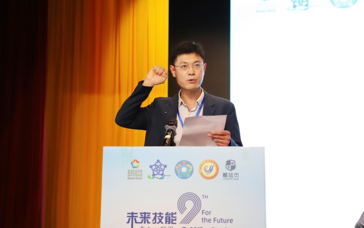 金砖国家技能发展与技术创新大赛组委会执委会主席刘振英博士发表线上讲话,阐述了大赛的重要意义,强调了其在促进国际技能合作、推动技术创新方面的核心价值,为全体参赛人员送上殷切祝福与鼓励。