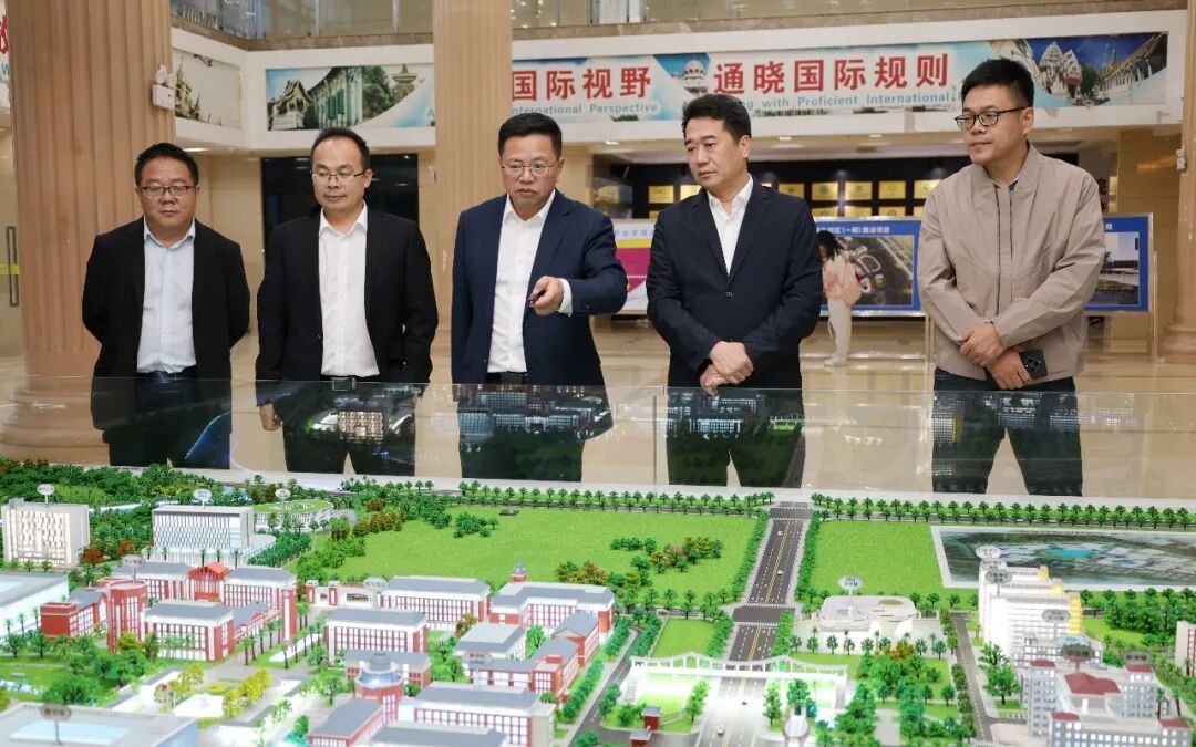 调研组一行实地察看了学校整体规划沙盘、综合服务楼以及东校区第一实训楼项目建设现场,详细询问项目规划、建设进度及功能布局,对学校高效推进基础设施建设的成效给予肯定。杨善华指出,海南自贸港建设与航天强国战略的深度叠加,为职业教育发展提供了前所未有的历史机遇。学校要立足文昌国际航天城区位优势,主动布局航天产业专业,创新产教融合模式,为海南自由贸易港和服务地方区域发展培养兼具国际视野与实操能力的复合型人才。