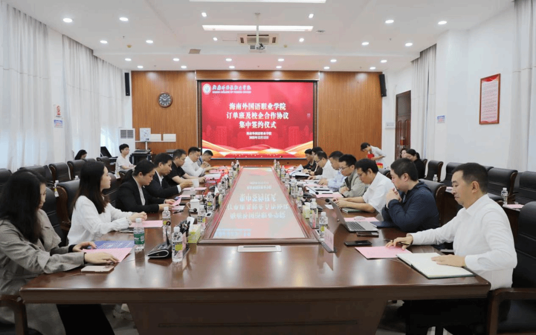 座谈会上,学校领导与6家企业负责人深入交流,共同探讨如何通过订单班等模式实现精准育人。黄学彬指出,学校作为海南唯一公办外语类高职院校,为广大学子提供了良好的教育和成才平台,希望通过校企合作,培养“毕业即上岗”的实用型人才,助力乡村振兴与海南自贸港建设。企业负责人纷纷表示,希望以本次集中签约为契机,在人才订单培养、合作开发课程、实践教学基地建设、师资互聘、技能竞赛指导等方面开展深层次合作,实现校企共赢,为海南自由贸易港建设培养更多“留得住、用得上、干得好”的本土人才。
