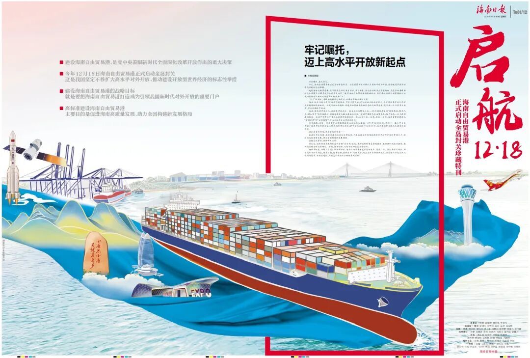 【编者按】2025年12月18日,海南自由贸易港正式启动全岛封关。在这一重要历史时刻,海南日报重磅推出《“启航12·18”海南自由贸易港正式启动全岛封关珍藏特刊》,全景视角记录海南全面深化改革和建设中国特色自由贸易港的丰硕成果,并展望海南自贸港正式启动全岛封关的未来图景。珍藏特刊共148个版,分为三大篇章,以深度报道与创意设计相结合,展现海南奋进的壮丽画卷。