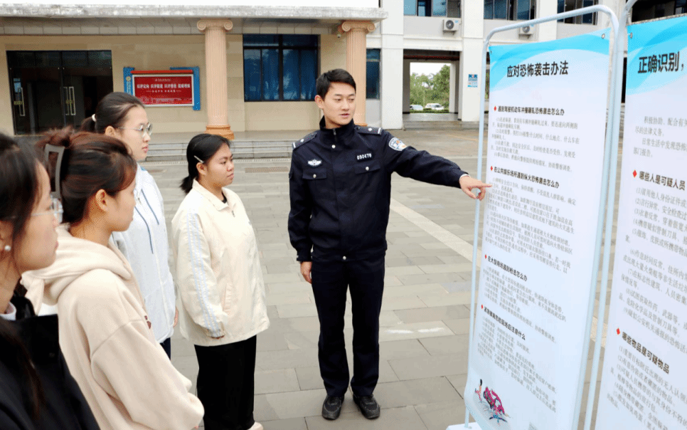 现场,公安机关民警讲解了应对恐怖袭击的办法以及正确识别、举报涉恐可疑情况的相关知识,用通俗易懂的语言让师生明白“反恐并非遥不可及的大事,而是渗透在生活点滴里的安全必修课”。