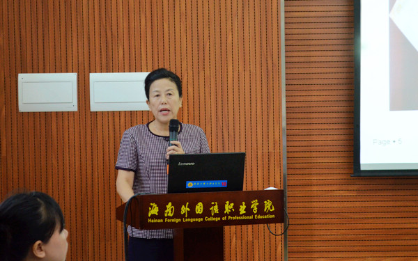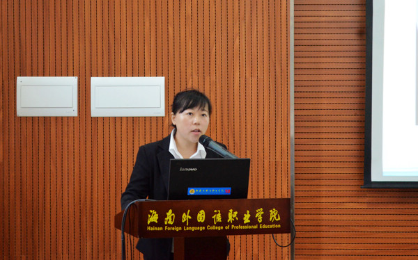 随后,“商务英语”和“应用俄语”两个专业的负责人先后作专业建设情况汇报,从人才培养模式、人才培养成效、师资结构优化、教师培训培养、校企合作、服务社会发展、课程体系改革、学生实习实训基地等内容作全面介绍。