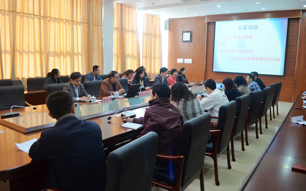 为营造良好的科研学术氛围,提升教师科研能力与学术水平,1月16日上午,我院邀请四川外国语大学英语语言学方向硕士生及博士生导师、四川外语大学教育资源与教学改革研究所所长、四川外国语大学期刊社副社长、《外国语文》主编熊沐清教授莅临我院作了题为《科研创新与界面研究——以认知诗学和叙事教学法为例》的学术报告。省英语日语应用研究会副会长、秘书长,海南科技职业学院副院长陈宗华教授一同访问我院。院长李渝凤出席报告会,部分专业教师代表聆听了报告。报告会由副院长杨学前主持。