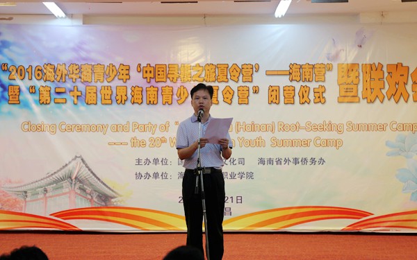 6月22日晚,由国务院侨务文化司、省外事侨务办联合举办的“2016海外华裔青少年‘中国寻根之旅’夏令营——海南营”暨“第二十届世界海南青少年夏令营”闭营仪式暨联欢会在我院多功能报告厅隆重举行。学院杨学前副院长出席并致闭幕词,省外事侨务办相关领导、学院相关部门负责人以及夏令营的全体营员,我院部分学生参加了此次闭营仪式。