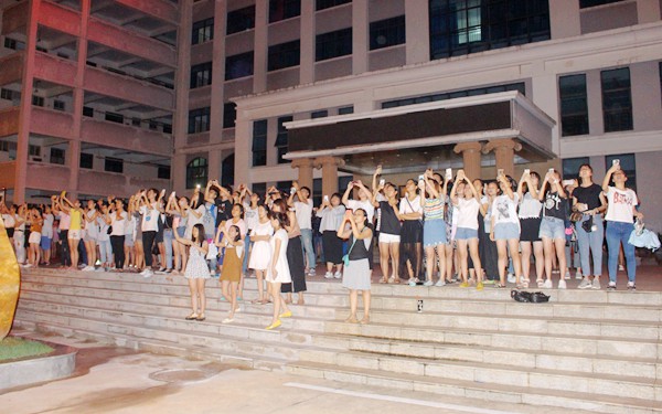 晚上8点,随着同学尖叫,大家看见了天边的一团火球——“长征七号”火箭成功发射升空!随着火箭的升空,大家也从刚开始的尖叫庆祝,到后面凝神屏气,静心观看。伴随着火箭的轰鸣声,大家纷纷用手机、相机记录着这震撼而又充满历史意义的一刻。