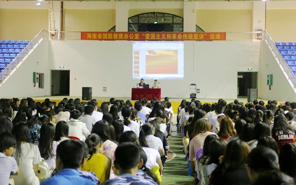 9月20号晚上,我院在体艺馆开展了“爱国主义和革命传统宣讲 新生国防教育专题活动,邀请中共海南省委党史研究室科研宣教处处长程小斌来校为师生作宣讲。学生处负责人张政主持宣讲会。2016级全体新生聆听了此次宣讲。