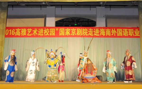 10月12日晚上,由教育部、文化部、财政部主办,海南省教育厅、中国国家京剧院以及我院承办的“2016年高雅艺术进校园”国家京剧院专场演出在我院体艺馆火热上演,一批京剧名家为我院师生献演经典传统京剧《对花枪》。海南省教育厅体艺处、文昌市教育局领导,学院领导陈礼民书记、崔昌华副书记、杨学前副院长与我院全体师生一同观看演出。