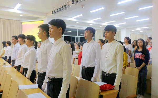 开班仪式上,新加入中国共产党的同学们面向党旗宣誓,做出他们人生中最郑重的承诺。此外,学员代表分别做了表态发言,表明了入党的决心。