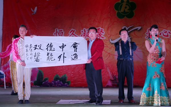 随后,两位失去双臂的艺术家用口书书法与足书书法为观众展示了不一样的书法作品,“会通中外,德能双馨”和“拼搏进取”十二个大字遒劲有力,大气磅礴,赢得了台下一阵阵热情且充满敬佩的掌声。盲人陈绍勤用独有的乐器——火柴盒,吹奏了《苗岭的早晨》,他用独特的音乐旋律将观众领略了奇妙的苗岭美好而欢快的清晨时光。为了救人而失去左臂的歌手用歌声演绎了他的顽强向上——《大海》、《我的未来不是梦》。盲人高治国虽然生活在无光的世界,但用声音感知生命,他练习器乐,用音乐看世界,一曲葫芦丝独奏《月光下的凤尾竹》,让大家体味了民族器乐的美妙。