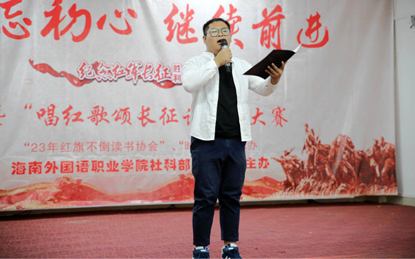 获得冠军的2016级应用西班牙语专业的林博铨同学个人朗诵《长征之路精神脊梁》