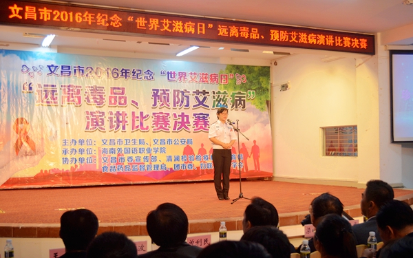 12月1315日,由文昌市卫生局、文昌市公安局主办,我院承办,文昌市委宣传部等部门协办的文昌市2016年纪念“世界艾滋病日”演讲比赛在我院图书馆多功能报告厅举行。本次大赛以“远离毒品,预防艾滋病”为主题,分为学生组及医护组两个比赛组别,来自全市十多家单位的选手齐聚一堂、各展风采。