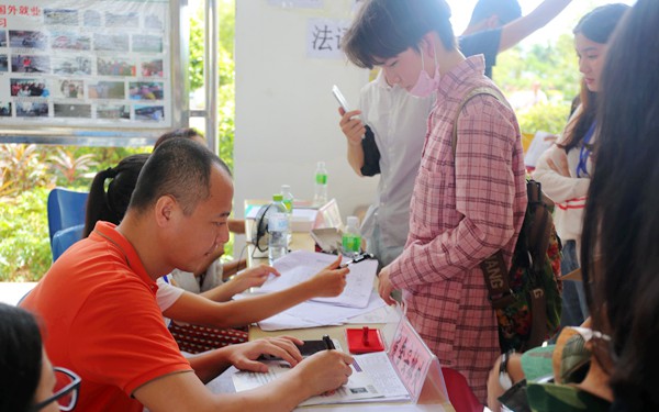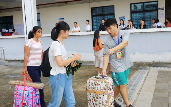 弥漫氤氲的清晨,校内外志愿者已在各个新生接待点准备就绪。有的志愿者不惧烈日站在我院内各个岔口为新生及家长进行引导,有的志愿者奔波于校门、报到处、宿舍;为学妹们搬运较重的行李箱,他们不顾头上的汗水,不顾头顶的烈日,怀揣在兜里的纸巾早已被汗水浸湿。有的志愿者顾不上自己早已口干舌燥,却依然第一时间回答新生和家长的各项疑问,然而他们唯一能稍作休息的时间只是他们喝水的那一刹那。志愿者们任劳任怨、埋头苦干的精神不断地描绘着着海外院之美,更让学弟学妹们贴身品味到一碗碗“暖粥”。