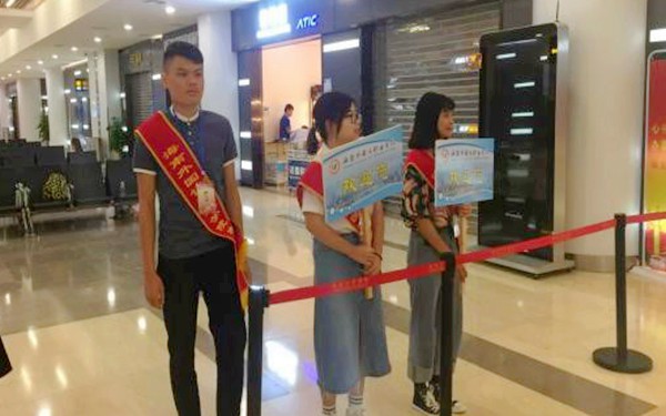 在机场、火车站、汽车站迎接新生的志愿者们