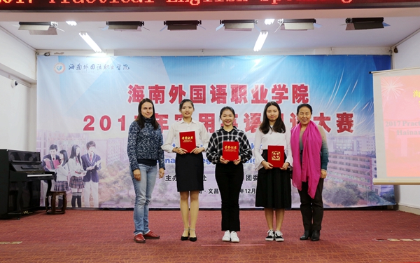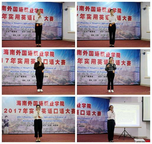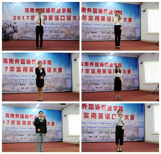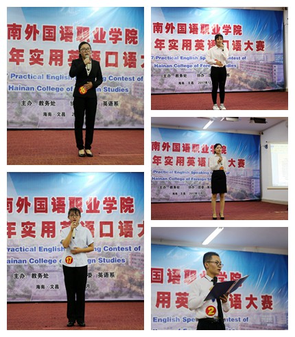 为通过竞赛进一步深化学院英语课程教学改革,不断激发学生学习英语的积极性,提高学生的英语口语表达能力,同时为我院参加明年全省实用英语口语大赛储备人才,12月19日晚,由教务处主办,团委、英语系协办的我院2017实用英语口语大赛在图书馆多功能报告厅成功举办。由各系部选拔推荐的20余名同学参加了比赛专业组和非专业组的角逐。我院景志华教授、刘丽艳教授、刘榜离教授、樊永前教授、张萍主任、翁天月老师、温春雨副主任担任大赛评委,国际商务系外教Helen老师担任主试官。