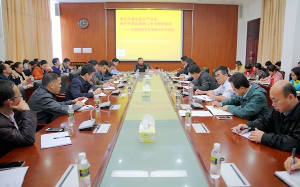 报告中,周灵均组长紧扣主题,结合自己多年的纪检监察工作实践、个人体会和研究,以大量鲜活的腐败典型案例,生动地阐述了全面从严治党的必要性、可行性,深刻分析了我省教育系统政治生态的状况,深入解读了我省教育系统全面从严治党存在的问题、原因、特征及风险,并提出了全面从严治党的新要求。