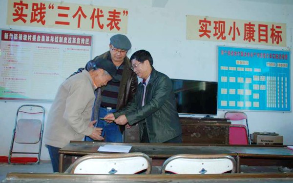 陈礼民书记把慰问金发放到贫困户手中