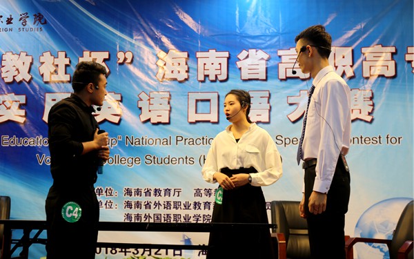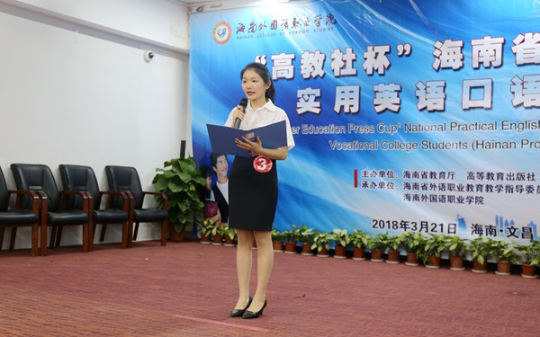 据悉,本次大赛由海南省教育厅、高等教育出版社主办,海南省外语职业教育教学指导委员会和我院共同承办,旨在进一步深化高职高专院校英语课程教学改革,不断激发高职高专学生学习英语的积极性,努力提高高职高专学生英语口语表达能力,同时为我省参加全国高职高专学生实用英语口语大赛选拔选手。