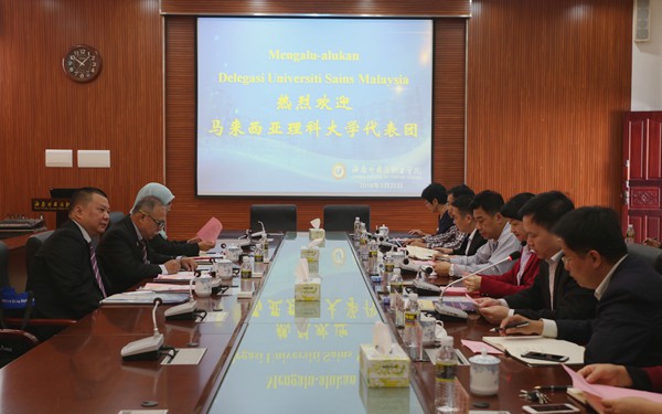 随后,马来西亚理科大学拿督·阿德楠·胡瑟因副校长简要介绍了马来西亚理科大学的发展概况、专业建设以及学生管理和人才培养等方面的情况,并表达了进一步加深和拓展双方合作的意愿,他希望两校通过建立友好合作关系,相互交流办学经验,积极推进两校间建立更加广泛、密切的合作。