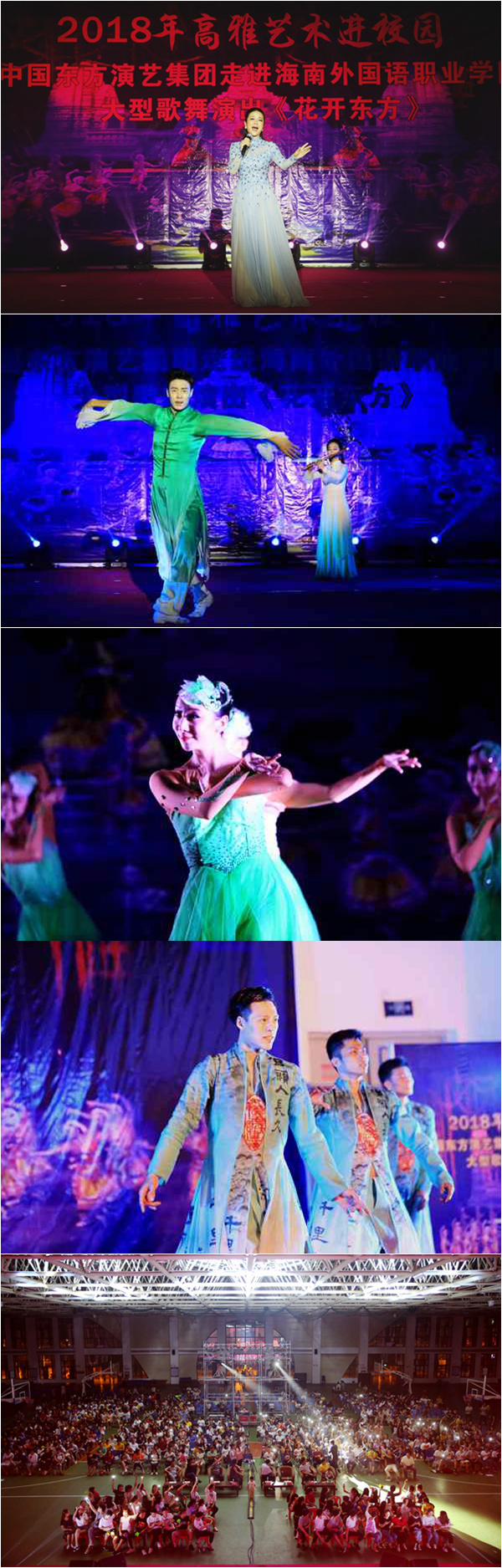 4月28日晚,2018年高雅艺术进校园中国东方演艺集团大型歌舞演出《花开东方》在我院体艺馆精彩开演。学院领导陈礼民书记、徐畅副书记、周运诗副院长,党委委员梁松主任(部长),与千名师生一同观看了演出。