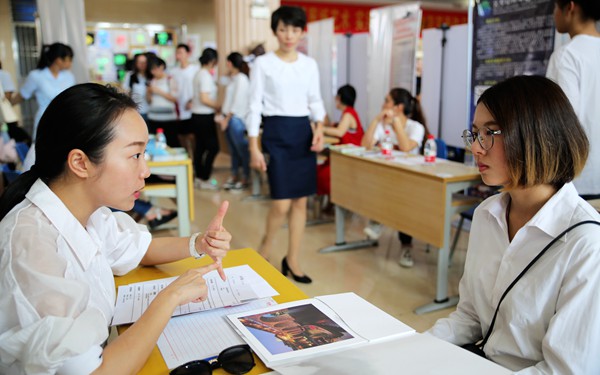 5月10日上午,由beat365实训就业处主办以及英语系、国际商务系和旅游系承办的2018届毕业生、2019届实习生校园供需见面会分别在综合楼一楼大厅和一号教学楼前举办。招聘会吸引了海南美邦教育管理有限公司、海南飞雁教育服务的有限公司、海南新软软件有限公司和三亚亚龙湾热带天堂森林公园等45家企业单位前来招纳英才,招聘岗位涵盖旅游、教育、外语培训、电子商务、市场顾问、国际物流、景区等多个领域百余个就业岗位,为我院学生就业提供了充足的选择。大部分企业反馈初步与毕业生达成就业意向,相当一部分毕业生进入企业招聘复试阶段。