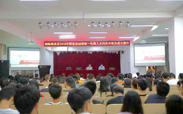 7日,深圳市头狼电子商务有限公司CEO朱加宝为师生作“电商人才岗位分析及成才路径”专题讲座,从电商行业现状、跨境电商人才需求、电商员工培养模式、行业目前的发展状况及市场开拓前景等方面,为师生作详尽分析。他分享了目前在其公司工作的毕业生情况,就跨境电商招聘人才的条件,工作岗位及其能力要求,指导大家如何去适应用人单位与大学生的就业矛盾,鼓励毕业生拥有敢于吃苦的精神与永不言败的毅力,在学好专业知识的同时做好自己的职业生涯规划,勇于走出去拓宽自己的视野,发掘自己的潜力,为将来就业与创业奠定坚实的基础。同时,他也向同学们抛出“橄榄枝”,希望同学们能加入自己的团队,与他们一起实现梦想。
