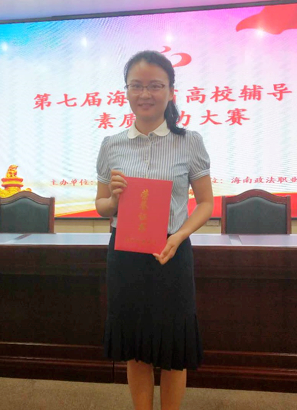 5月9日至11日,由海南省教育厅主办的第七届海南省高校辅导员素质能力大赛在海南政法职业学院举行。我院旅游系辅导员肖宝佳老师在比赛中发挥出色,最终凭着扎实的理论功底、出色的临场发挥,在参赛的27名选手中以总分第5名的好成绩荣获二等奖。