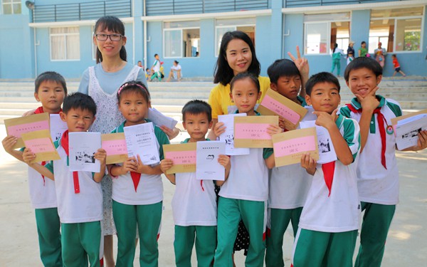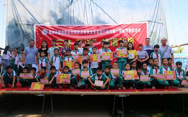 我院对祖坡村学生的帮扶远不只是提供继续教育政策扶持而已。在当天的主题教育帮扶活动现场,还举行了我院教育帮扶志愿者、祖坡小学优秀少先队员与26位贫困家庭学生“结对子”帮扶启动仪式,我院正在祖坡小学实习的6名优秀英语专业学生,以这种正式的形式与孩子们