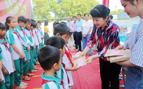 我院院长李渝凤、副院长周运诗、党委委员梁松带领有关职能部门负责人、师生参加活动,定安县政协副主席、新竹镇委书记陈小燕,定安县妇联副主席宋传龄,定安县新竹镇镇长薛根贵,我院驻村第一书记李诗钰,祖坡村委会负责同志,祖坡小学校长,祖坡村群众代表等与孩子们共度节日。