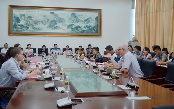 美国国际教育交流协会总裁米尔斯先生在讲话中介绍了此次培训的意义以及主要内容,他以中文歌曲现场献唱等方式开始了他的讲话,通过现场的不断互动让在座的学员打开“话匣子”。他表示,希望各位学员们在培训过程中 “别害羞,大胆说,放下心理障碍,不要怕丢脸”,大胆学,取得良好的学习效果,同时希望此次培训班,不仅能帮助学员们提升自己的英语水平,同时能促进中西方文化的融合,让学员们和培训的外籍教师共同架起中西方文化交流传播的桥梁。