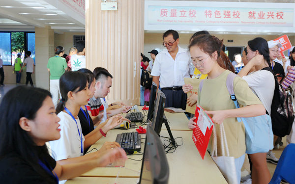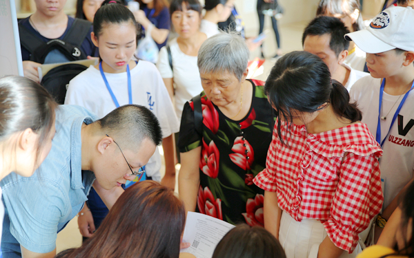 为确保迎新工作的顺利进行,学校精心部署,制定了详细的迎新工作方案,各新生接待工作小组根据职责分工,在报到现场各司其职,认真做好各项工作。上午8点多,设在综合楼一楼的新生集中报到现场人声鼎沸,各个工作岗位的工作人员、学生志愿者热忱地为前来报到的新生及家长提供服务。