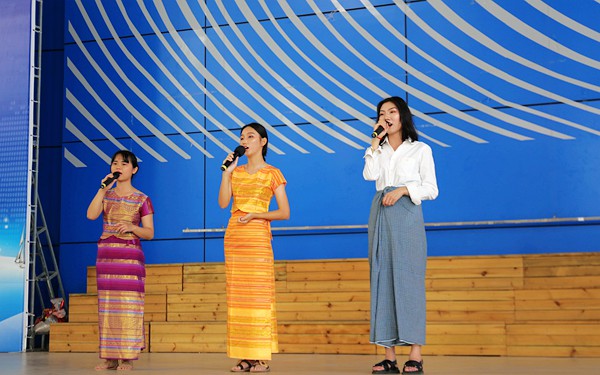 演出结束后,来自东语系的老挝语教师吴敦世,泰语优秀学子刘良淏,柬埔寨外教王虎老师分别走上台,向五源河学校师生们介绍和宣传了他们所学专业语种国家特色、文化及风俗习惯,并与现场师生进行面对面交流和互动,并赢得了一次次掌声。