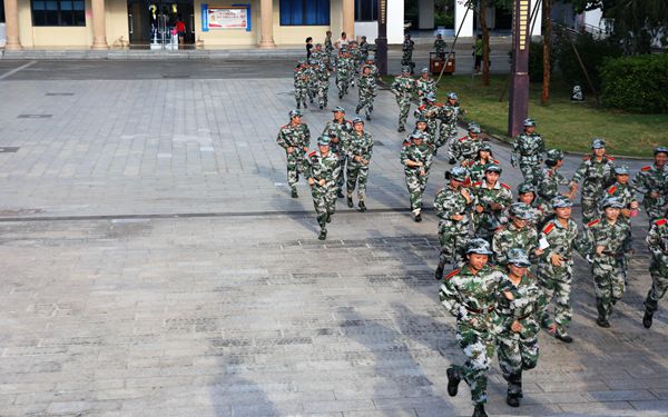 在消防技能展示和消费疏散演练现场,文昌市公安消防支队的官兵首先给新生们讲解了在突发火灾事故时的正确逃生方法和注意事项,并进行了现场示范。同时也为新生们展示了如何使用灭火器,并进行示范,讲解动作要领,随后模拟了火灾时如何用灭火器灭火。