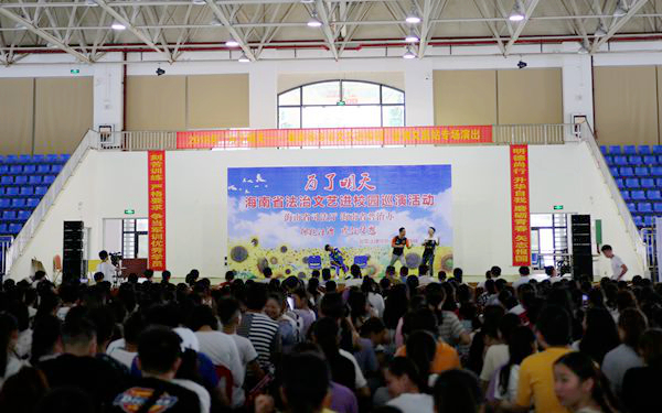 为进一步提升青少年的法治观念和思想道德建设,让更多青少年学生接受法治文化的熏陶,提升法律素养,9月25日上午,由省司法厅、省普治办主办,市普法办、市法制司法信访局、市教育局承办的2018年“为了明天——海南省法制进校园文艺”巡演活动在我院体艺馆举行。我院党委委员梁松及各系部负责人、全体2018级新生,以及市普治办、市法制司法信访局、市政法委、公、检、法、团市委等文昌市普治领导小组成员单位的负责领导和同志共同现场观看演出。
