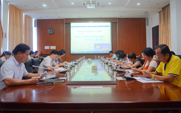 9月20日下午,我院纪律检查委员会在综合楼七楼第一会议室召开“每月一教育”专题会议,集体学习新修订的《中国共产党纪律处分条例》以及上级有关文件精神。在家的院长李渝凤,党委副书记、纪委书记徐畅,副院长杨学前,党委委员梁松出席会议。全体副科级以上干部参加会议。纪委办主任李南群主持会议。