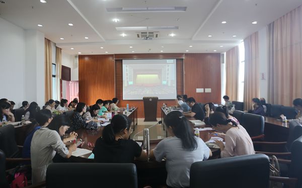 10月15日下午,为学习贯彻习近平新时代中国特色社会主义思想、党的十九大精神、“科技三会”精神和习近平总书记关于科学道德和学风建设的重要指示精神,进一步推进科学道德和学风建设宣讲教育工作,中国科协、教育部、中科院、社科院、工程院、自然科学基金委、北京市人民政府在人民大会堂举办了主题为“以习近平新时代中国特色社会主义思想为引领,大力弘扬新时代中国科学家精神和爱国奋斗精神”的报告会,同时在全国各省、自治区等设立多个分会场进行网络视频直播。我院组织广大教师于综合楼7楼第二会议室收看报告会直播,学院副院长杨学前与广大教师一同收看直播。