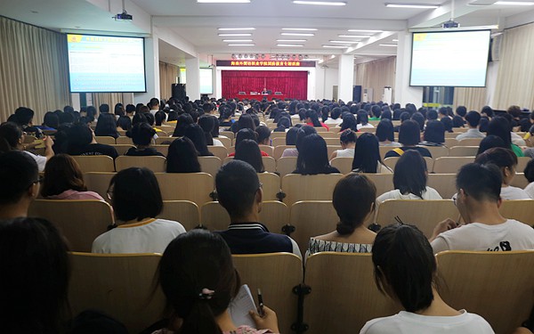 10月17日晚,我院图书馆多功能报告厅内座无虚席,省国防教育讲师团成员贺光平大校受邀来校作题为《中美对抗下的国家安全》的国防教育专题讲座。我院党委副书记、纪委书记徐畅出席与广大2018级新生共同聆听了讲座。学生处负责人主持讲座。