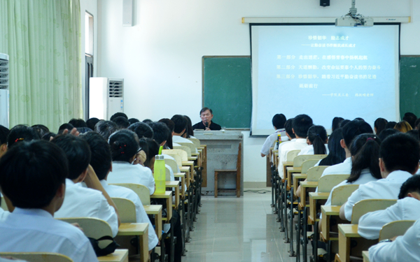 10月23日下午,我院旅游系在多媒体13教室举办题为“珍惜绍华 励志成才——让勤奋读书伴随我成长”的专题讲座,邀请我院关工委主任韩祝畴为该系2018级五年一贯制新生分享“读书与成长”的知识。该系党总支主要负责人林明霞主持讲座。