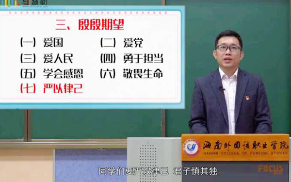 “同学们,往年的今日,海外院美丽的校园里,到处都是你们青春的身影,琅琅读书声此起彼伏。然而,来势汹汹的新冠肺炎疫情,阻挡了我们相聚的步伐。今天,我在这里给同学们上一场特殊的一课。”