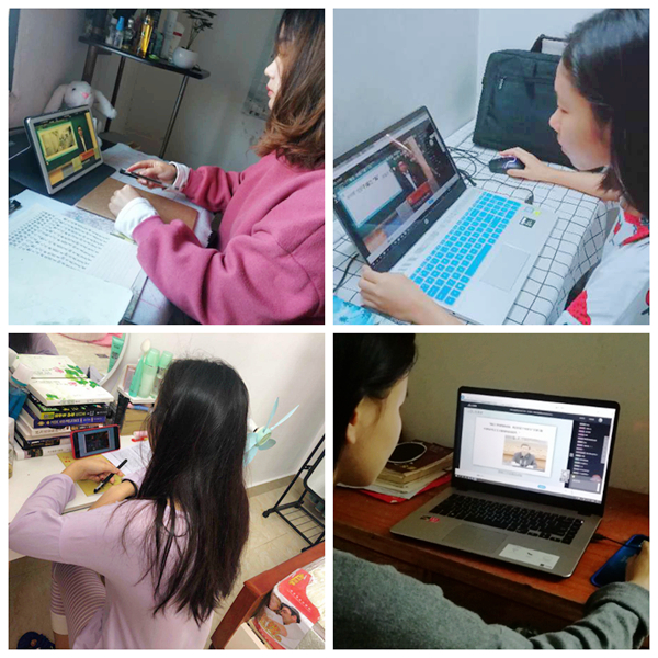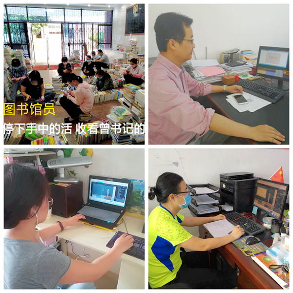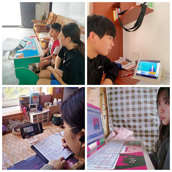 全体师生或在工作岗位上或在家中以各种形式收看开学第一课
