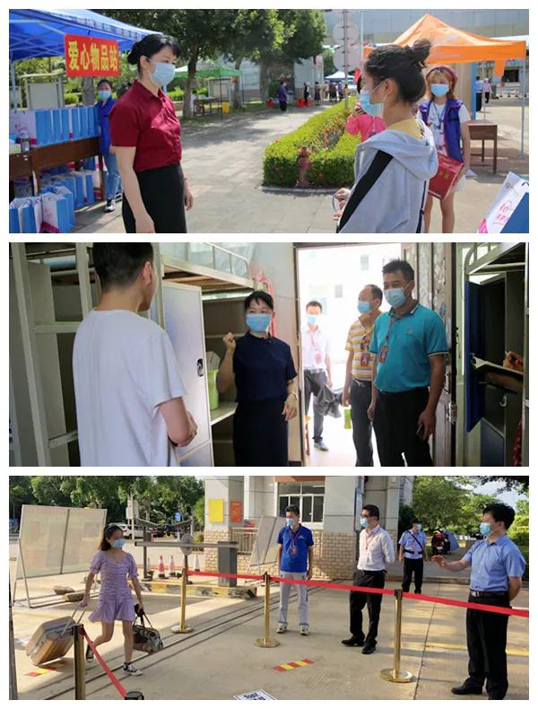 我们还看到了院长李渝凤、副院长杨学前、纪委书记黄培怡、党委委员梁松等学院领导等候迎接我们回来的身影。看到我们都平安回来,他们都表示很开心。他们与我们亲切交谈,了解我们返校路上情况,并嘱咐我们天气炎热,要保重好身体,还让我们返校后要继续做好个人防护,用心学习,学院将尽全力做好各项后勤保障工作,为我们营造安心、放心的学习生活环境。