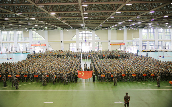 在雄伟而庄严的国歌声中,军训总结大会拉开帷幕。