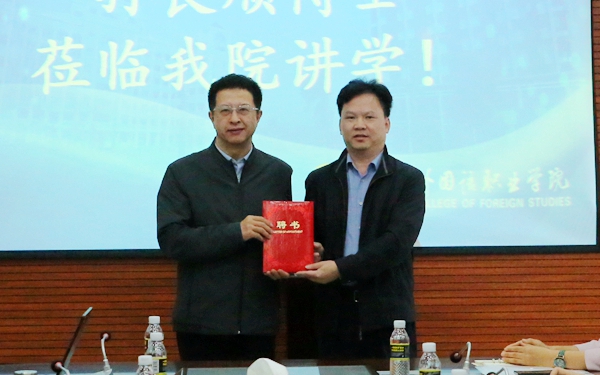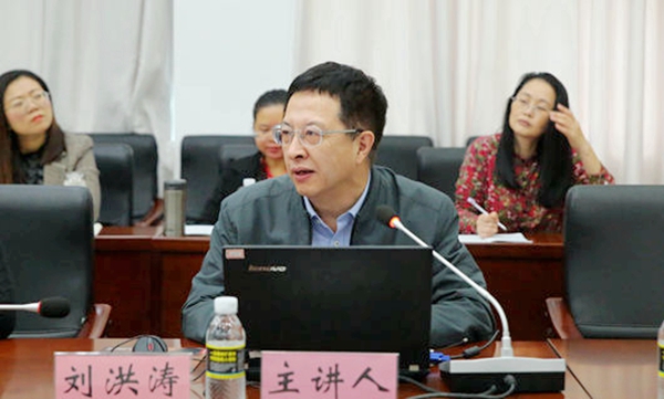 12月7日上午,我院在综合楼7楼第一会议室举办两场别开生面的讲座,特邀北京师范大学文学院比较文学与世界文学研究所所长、博士生导师刘洪涛教授和湖南科技大学奋进学者、湖南省中国特色社会主义理论体系研究中心特约研究员刘良顺博士到校讲学。学院副院长杨学前、学院特聘教授熊沐清、学院教指委主任景志华教授出席讲座,学院各系部40多名教师参加讲座。熊沐清教授主持讲座。