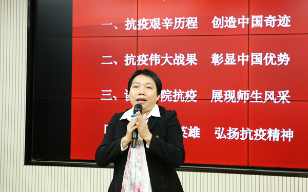 讲座尾声,旅游系党总支书记林明霞在总结讲话中,号召同学们致敬抗疫英雄,弘扬伟大抗疫精神,将中华民族在本次突发重大疫情中迸发出的英雄精神铭记在心里、落实在行动中。
