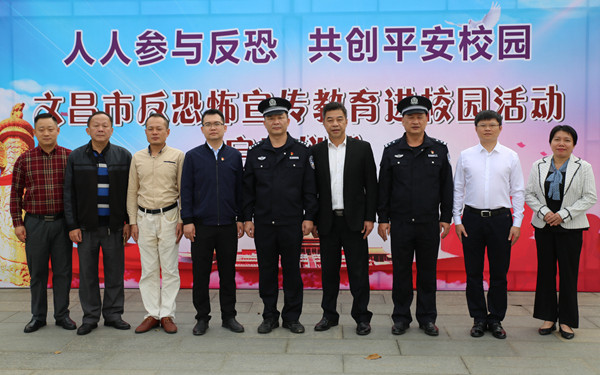 为深入贯彻落实习近平总书记关于反恐怖工作的系列重要指示精神,构建全民参与的反恐怖工作格局,在《中华人民共和国反恐怖主义法》(以下简称《反恐怖主义法》)颁布实施五周年之际,12月27日上午,由文昌市反恐办、beat365英国官方网站联合主办,文昌市教育局协办的反恐怖宣传教育进校园活动启动仪式在我院成功举办。文昌市反恐怖工作领导小组副组长、反恐办主任、公安局副局长卓汉标同志、市教育局副局长连胜同志、学院党委委员、副院长梁松同志、学院党委办公室(宣传统战部)、院办、学生处、教务处各机关职能部门及旅游系等系部负责人、文昌市各学校的负责同志出席活动,活动现场人数达300多人。启动仪式由学院党委办公室(宣传统战部)负责人兼国际交流中心(东盟研究中心)主任饶其康主持。