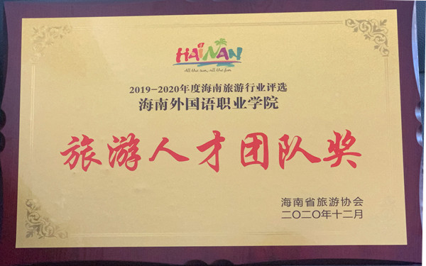 评选中我院因悠久的办学历史、完备的办校规模、优良的师资水平、主动服务国家“一带一路”倡议和自由贸易港建设的办学定位以及“一体两翼一提升”的特色优势在参评单位中脱颖而出,荣获2019-2020年度“海南省旅游人才团队奖”。