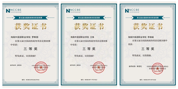 2019商务英语(外贸1)班李杨城获得决赛三等奖的好成绩。此外,在初赛中,李杨城和肖柳(2019商务英语(跨境电商))获二等奖,罗斯园(2019商务英语(外贸2))、王珠(2019商务英语(外贸2))、郑紫虹(2017商务英语(501))、王语彤(2019商务英语(跨境电商))陈子君(2019商务英语(外贸2))和樊沙沙(2019商务英语(外贸1))获三等奖,为学校赢得了荣誉。我院选手获得优异成绩充分体现了我院学生较强的英语应用能力和较好的商务素养。