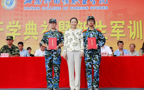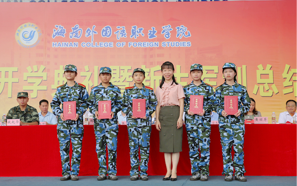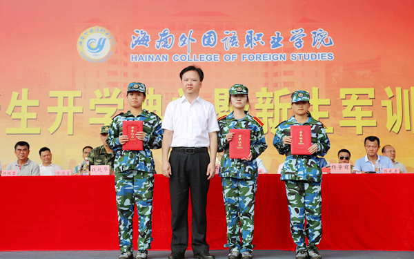 大会对我院2021级新生学业奖学金、东盟语言专业奖学金的获得者、优秀教官、军训优秀标兵、军训先进集体等进行表彰,参会领导为获奖个人和集体颁奖。