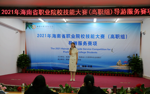 10月26日至27日,由海南省教育厅、海南省人力资源和社会保障厅主办,我院承办的2021年海南省职业院校技能大赛导游服务赛项比赛在我院图书馆多功能报告厅成功举办。本次比赛共有来自全省11所院校的42名选手参加,我院选派4名学生参加比赛,与其他选手同台竞技、各显风采。