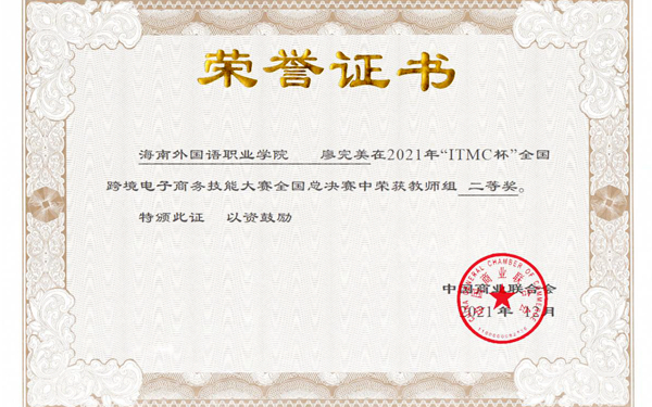 12月18日,由中国商业联合会主办的“ITMC杯”全国跨境电子商务技能大赛全国总决赛圆满结束。来自全国32个省市435所学校的563名教师和931名学生参与教师组和学生组的比赛。beat365英国官方网站国际商务系教师廖完美获得大赛教师组二等奖;刘新花同学获大赛学生组一等奖,周可和申润田同学获三等奖。易曼、朱婷和廖完美老师荣获“优秀指导教师奖”。
